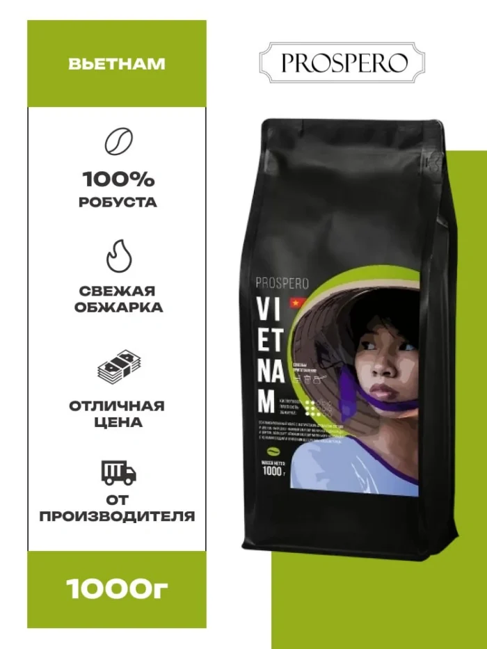 Кофе в зернах Prospero Вьетнам — это отличный выбор для настоящих ценителей кофе.